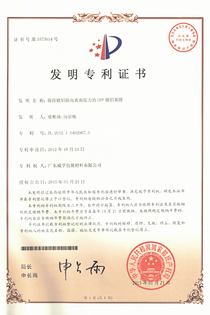 CPP流延生產(chǎn)線和鍍鋁生產(chǎn)線各增加1條