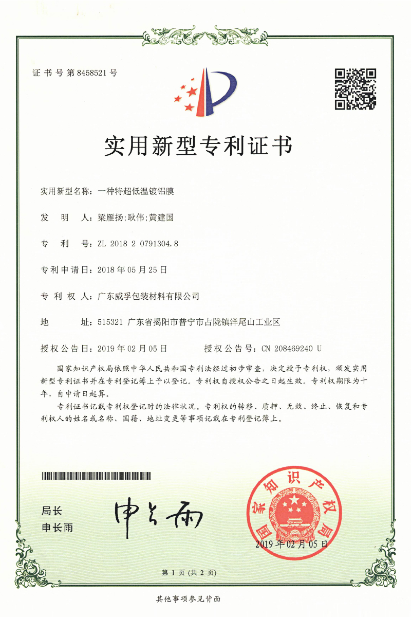 廣東威孚包裝材料有限公司成立